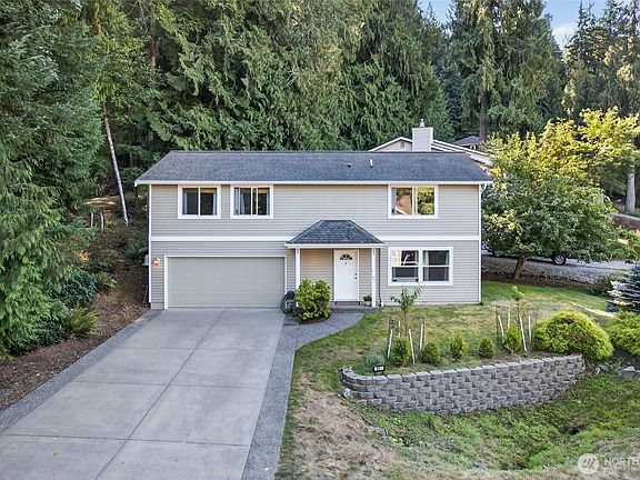 Situated on a sunny corner lot, this Gate 2 Sudden Valley home offers 4 bedrooms/2.5 bathrooms, a flat driveway, and a 2 car garage. Downstairs features a cozy living room and kitchen with stainless steel appliances & an eating area. Upstairs features spacious bedrooms, including a large 4th bedroom that could be used as bonus/flex space, a primary suite with an attached bathroom and walk in closet, plus a large laundry room with room for additional storage This house is a short drive from the Gate 2 entrance and within close proximity to all of the Sudden Valley amenities golf course, boat launch, lake access, parks, pool, tennis courts, fishing, & trails!