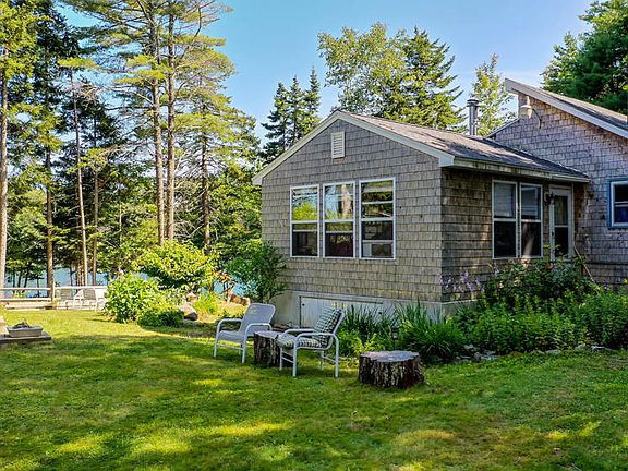 Great location for this water front cottage overlooking Basin Cove. Includes second building, 'studio' that opens up lots of options. 128' tidal waterfront on a .5 acre lot at the end of quiet dead-end. Water front has nice gentle ledges, great for easing a kayak in the water, swimming or fishing. Cottage is used year round. 2017 roof shingles on cottage w/cedar shake siding. Drilled well, gray water system. Propane wall heater in cottage, and elec heat, and heat stove. Stackable washer & dryer. Awesome family compound opportunity! Marina & restaurants just a few minutes down the road!