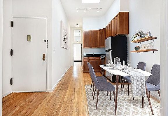 Available after July 1. *First showing will be Saturday May 21 by appointment only* OUR OPINION: This sun drenched gem was recently renovated, and features skylights, recessed lighting, loft-like ceilings, and up to date finishes. It can be used as a 2 bedroom without a living room, or as a large 1 bedroom with dining room. The building offers laundry facilities and a common outdoor patio. Email me for a video! THE LOCATION: The building stands just 2 blocks away from the Graham L train at the intersection of Metropolitan Avenue and Graham Avenue. The area has been growing quickly with many new store front businesses opening their doors. Graham Avenue is lined with outstanding restaurants, unique bars, and boutique shopping, boosted by a very speedy commute to and from Manhattan.
