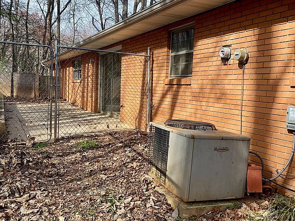 Perched on almost 2 acres in the sought-after Woodside Hills Community lies unlocked potential. Let your imagination run wild with this 3 bed/ 2 bath brick ranch meets mid-century home. The large living room boasts floor to ceiling windows and 1 of 2 original brick, wood burning fireplaces. The 2nd fireplace can be found in the kitchen area. The hallway leads you to the large primary bedroom with connected full bath as well as 2 additional bedrooms and the 2nd full bathroom. Hardwood floors are present in the bedrooms. The unfinished lower level has walkout door as well as a garage door. Detached carport with enclosed utility room. The park-like setting has mature trees as well as a small creek running through it that offers privacy. House is being Sold As-Is and seller is offering no warranty.