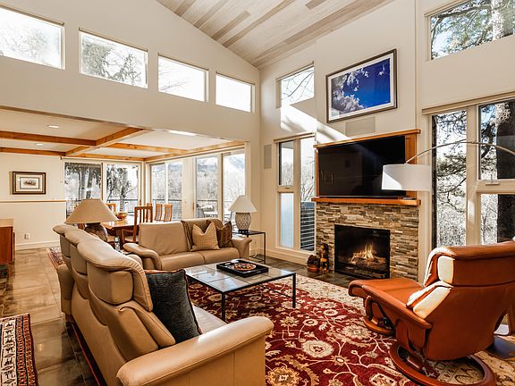 Enjoy the beautiful, timeless style of this 4-bedroom townhome overlooking Castle Creek. The property is located on the Aspen Institute campus, where guests can enjoy access to the gym, the tennis courts, and the pool for an additional fee, and the complimentary shuttle service, which takes guests to town every 30 minutes. The West End locations provides for a quiet and serene environment year round. The property offers one covered parking space, a laundry room, an equipped kitchen, and a dining table that seats 8 individuals.
