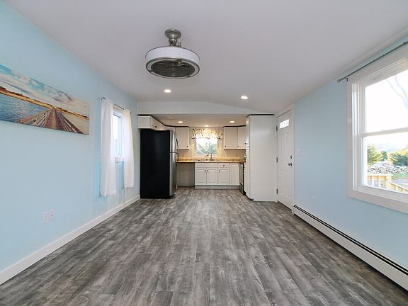 This is not your typical modular home! This is located in a stick built home community. Completely gutted and rebuilt from top to bottom with durable materials and quality finishes. Foam insulation throughout, efficient top notch Navien propane gas heating system, new windows & doors, laminate hardwoods, stainless steel appliances, and AC mini split. The bathroom just had new flooring installed and the driveway has been recently paved (both not pictured). Beautifully painted with a beach theme in mind to match the lovely gray toned flooring. This calm oasis of a home is situated on a quiet dead end street with plenty of parking and private front yard. Located in northern Portsmouth for convenient on-off island access and yet a short drive to the Navy Base, Coast Guard Facility, and downtown Newport. Fully equipped kitchen with dishwasher and front loading washer & dryer, the rent includes water, sewer, trash, lawn care, snow removal, and parking. This is a yearly rental or longer. This property exudes pride and craftsmanship from the owners who live next door. Truly a unique home with low utility costs due to the extensive renovation. Excellent credit, references, and exit cleaning fee required.