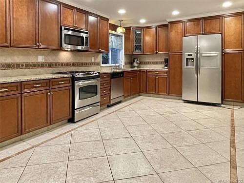 Where to begin? This basic 3 bedroom 2 bath ranch style home has been expanded. There is a smashing sunroom/new bath addition which overlooks a sprawling fully fenced yard. There is a very large living room with triple window and fireplace. The builder/owner installed an spacious granite eat in kitchen which has amazing cabinet and prep space. (The oven and stove top are propane. Tank in rear yard behind it. The big surprise is found in the lower level: There is a second full kitchen open to a bonus/media room. (The owners reserve a lockout room in the lower level and the shed in the yard for their possessions. The furniture in the house and outdoors will remain. This home has an oversize and immaculate garage, central air, hardwood floors and expansive finished spaces. Set at the end of a cul de sac, the house affords privacy yet is close to Black Rock shopping which is a block away. Landlord provides lawn care and leaf pick up. Student tenants will be considered on a per student fee basis ($1600 per student. FRONT DOOR MUST BE LOCKED USING THE KEY.