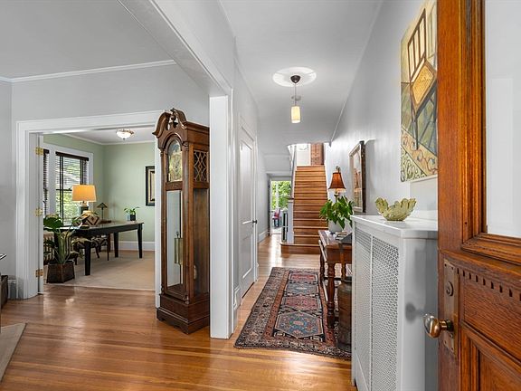 Offer accepted, open house cancelled. This expansive townhome consists of approx. 3350sf w/ 5 beds & 2.5 baths across 4 stories including a guest suite studio which has its own eat-in kitchen on the lower level. Through the residence’s front porch, the main living level features a living room w/ gorgeous bay windows & original red brick fireplace, a separate light & bright office through french doors & a dining room overlooked by the well equipped kitchen w/ stainless steel appliances, built-in pantry & peninsula w/ bar stool seating. Upstairs features the front facing primary bedroom, a guest bedroom & library w/ custom floor-to-ceiling built-ins. The home’s top floor boasts a large flex space perfect for a home gym or media room, & an additional bedroom. This home is complete w/ preserved original details, hardwood floors, ample storage, multiple outdoor spaces including a large backyard w/ patio & 2 garage parking spaces.
