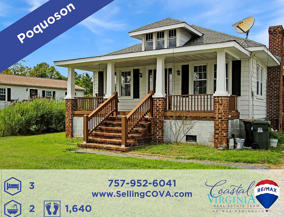 Come check out this charming bungalow located in desirable Poquoson. This home has a large living room w/built in cabinets. Kitchen has been updated w/stainless steel appliances and butcher block countertops. Enormous master suite with a walk in closet and access to the back deck. You will love the large front porch where you can sit and enjoy the beautiful sunrise and sunset views that come with this property. Flood insurance is transferable and is $103 per month.