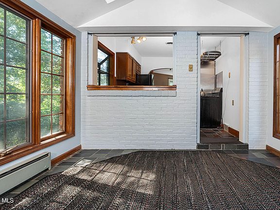 One of a kind brick ranch in top rated North Colonie Schools. Rich in history, the custom design aligns seamlessly with the cliffside landscape. Truly a nature enthusiast's dream home; enriched with lush perennial gardens, courtyard patio, elevated expansive deck and terraced stairway the property creates a private retreat experience. Home Highlights: Slate roof, Copper gutters, Copper Sunroom Roof, Picture windows, Hardwoods, Updated Ceramic tile Main Bath, Slate floor sitting/breakfast room ,open dining area with built-ins , expanded primary bedroom w/ custom built-ins, spiral stairway to finished lower level family/great room, panoramic view from enclosed 3 season sunroom. Full Bathroom in lower level. Central Air Gas Furnace or each room has electric heat too.