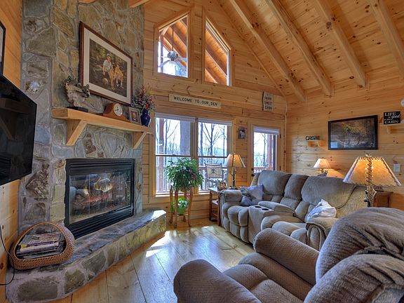 PREPARE yourself for one the most SPECTACULAR views in the area! The moment you walk in the door you will see the quality of this cabin, High end kitchen appliances , LARGE granite island, Rock fireplace to the ceiling, with a Large master bedroom, bath and closet on the left of cabin/ Guest room and bathroom, on the right! DOWNSTAIRS IS ALL WOOD AS WELL, WITH TWO BEDROOMS & FULL BATH AND A LARGE FAMILY ROOM, AND storage area! BUT THE HUGE DECK WILL DRAW YOU OUT to the amazing views!!! small area fenced for dogs, Whole house generator, stone pathways, Paved roads to the cabin and a Paved Driveway, two car garage.. Two lots across from the cabin guarantee your privacy , for a total of over 5 acres. DON'T LET THIS OPPORTUNITY GET AWAY FROM YOU , a beautiful setting with wonderful neighbors as well! FURNITURE NO LONGER IN THE HOME