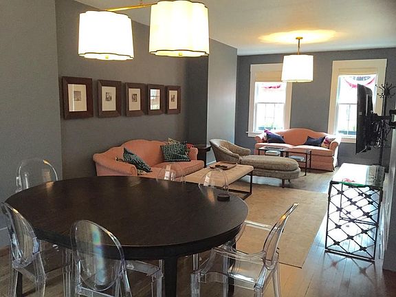 Extensively renovated 3+ bedroom row house on one of Charlestown's historic gas-lit streets. This spacious and energy efficient home features a first floor living and dining room of 30' x 15' leading to a kitchen with custom cabinetry, black granite countertops and stainless steel appliances. An expansive outdoor patio is adjacent to the kitchen, and there is a first floor powder bath. A distinguished drawing room (potential fourth bedroom) on the second floor is accompanied by two bedrooms and one full bathroom. The third floor boasts a 580 square foot master suite with three walk-in closets plus full size washer and dryer. The master bathroom is lined with marble floors, walk-in dual exposed shower systems, his and hers sinks and a 66" claw-foot soaking tub. Original hardwood flooring, crown molding and floor to ceiling windows define the character found in this meticulously cared for property. **property can be rented fully furnished**