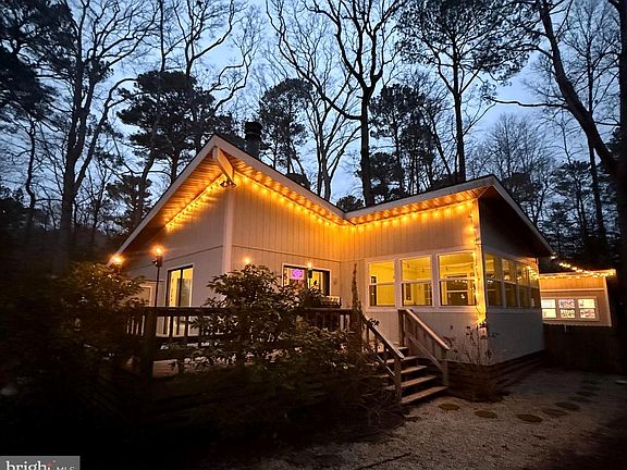 Your beach retreat! Updated 3BR/2BA one-story contemporary tucked away on .48 ACRE partially-wooded, private and peaceful homesite - one of the biggest lots in amenity-rich Ocean Pines - parks, pools, community boat launches and beaches, robust recreation programs, walking trails, golf, yacht club, and so much more - just 5 miles from Ocean City, where OP residents have an oceanfront Beach Club. Unique custom home with a wide open floorplan - great room with vaulted ceilings, exposed beams, handsome brick corner hearth - offers ample living and dining spaces, sliders to the large heated sunroom. Kitchen w/vaulted ceiling and skylight - ample cabinets including a pantry cabinet. Primary bedroom boasts an updated en-suite bath - tiled-surround shower, gorgeous vanity, ceramic tile floors. 2 additional bedrooms; 2nd full bath with a tub/shower combo. Incredible workshop/shed with electric. Fenced area perfect for entertainment - hot tub, fire pit, plenty of space to sit and relax. Expansive yard goes way beyond the fenced area. Tons of parking for all your guests in the large driveway. With all the neighborhood amenities, you can vacation at home all year long, minutes to fishing and pony-watching at the treasure that is Assateague Island; spend an afternoon on Ocean City's boardwalk. Shopping, dining, arts, history, and tons of entertainment - from nature walks and water sports to tennis and everything in between. Visit Downtown Berlin to enjoy a rich arts scene, unique boutiques, brewery, restaurants - it's America's Coolest Small Town after all! Sizes, taxes are approximate. Note - Video Tour doesn't show the expansive yard or the workshop.