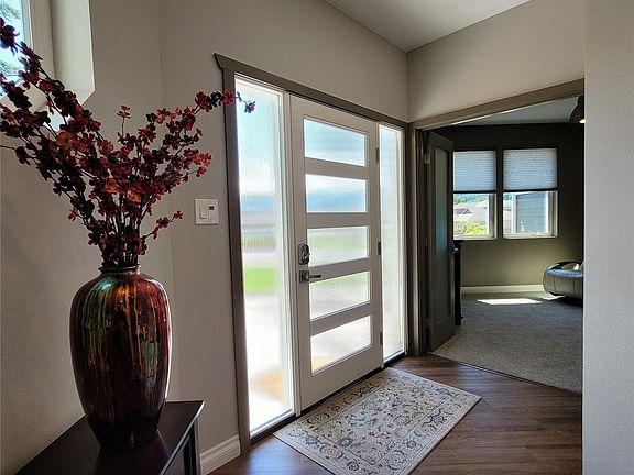 No step, contemporary home w/36" doors, wide hallways & turnaround space: this home is perfect for long term comfortable living! Luxury vinyl floors, Greatroom, ample dining space & enormous Quartz island; suited for relaxation or entertainment. Sleek cabinetry, S/S appliances w/ultra quiet dishwasher & propane range w/dual oven, efficient on demand hot water & quiet radiant heat. Propane stove offers ambient heat in the winter months. French doors in living area lead to a generously sized covered patio overlooking a fenced backyard. Posh primary suite presents French doors to patio, roomy en-suite & walk-in closet. Guest bedroom w/Murphy bed looks out to the Sequim's hills & mtns. Easy care landscape, ample parking & RV pad w/full hookups.