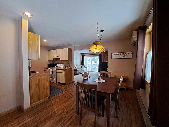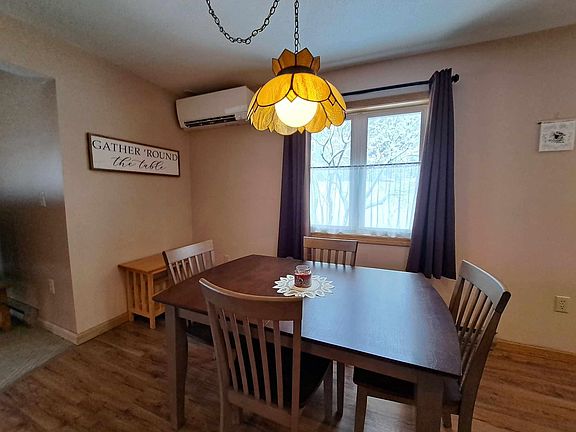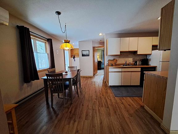 Welcome to this well-cared-for 1-bedroom end unit in one of the most sought-after complexes in the area! Situated on the ground level with no stairs, this condo features a bright and sunny open-concept dining and living area, complemented by a charming galley kitchen to the side. The living room serves as the heart of the home, highlighted by a central corner wood-burning fireplace with a rustic wood wall backdrop and a slider opening to a patio area. It’s the perfect space to savor your morning coffee or relax with a good book while enjoying the view of the community’s meticulously maintained grounds. In 2024, a mini-split system was installed for efficient year-round heating and cooling, along with a new refrigerator, stove, and furnishings for added comfort and style. The complex itself is a true retreat, offering a stunning pool surrounded by shade trees, complete with a waterfall and jacuzzi. For those who enjoy staying active, there are tennis and pickleball courts, as well as 300 acres of common land featuring private hiking trails. Additional wood storage space is located outdoors for your convenience. This cozy unit perfectly blends comfort, convenience, and natural beauty. Don’t miss the chance to make this exceptional end unit your new home!