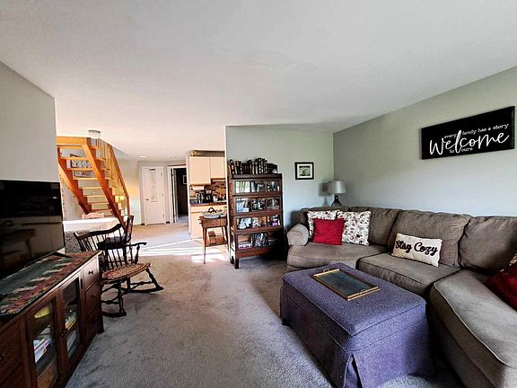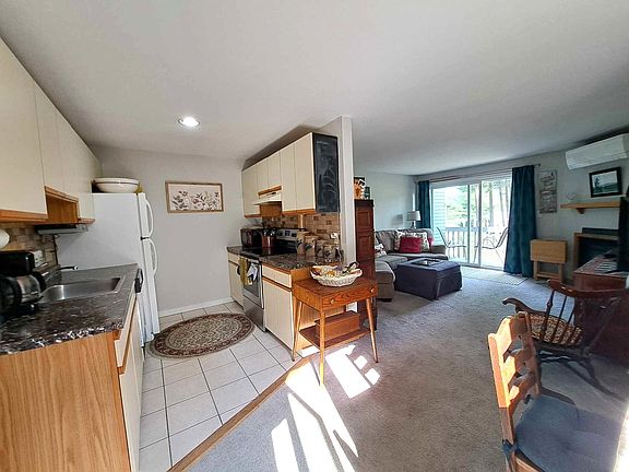Welcome to this meticulously maintained 2-bedroom, 2-bathroom end unit townhouse in one of the most sought-after complexes around. As you enter, a cozy mudroom awaits, perfect for storing your outdoor gear and keeping your home tidy. Upstairs, you'll find a bright and sunny open-concept dining and living area, complete with a charming galley kitchen to the side. The living room is the heart of the home, featuring a central corner wood-burning fireplace with a beautiful wooden mantle and a slider that leads out to a small sitting deck. This is the perfect spot to enjoy your morning coffee or unwind with a good book while taking in the view. This level also includes a spacious bedroom and a full bath, offering convenience and versatility. The open wooden staircase leads you to the second level, where you'll find a large bedroom with an attached 3/4 bath and convenient laundry facilities. A generous storage closet provides ample space for all your non-seasonal items. The newer mini-split system ensures comfortable heating and air conditioning throughout the year. The complex is a true retreat, boasting a stunning pool surrounded by trees for shade, complete with a waterfall and jacuzzi. Stay active with tennis and pickleball courts, and explore the 300 acres of common land featuring private hiking trails. This townhouse offers the perfect blend of comfort, convenience, and natural beauty. Don’t miss the chance to make this exceptional end unit your new home!