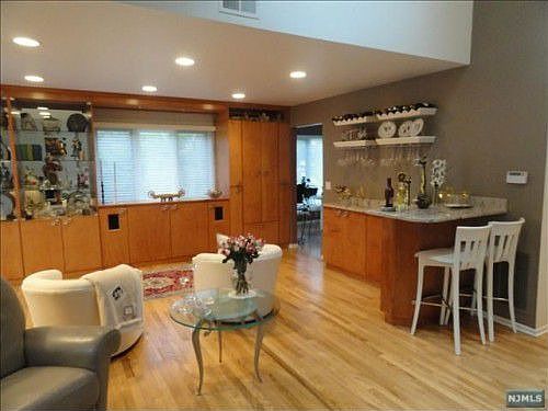 Upscale style & remodeled to perfection. Entertainers delight. Move right into this end unit with an updated kitchen granite countertops, dining room cabinet & display units built-in, unique design updated master bath with walk-in shower & expanded fitted closet. 2.5 of the 2.5 baths totally redone. Jacuzzi in main bath & full bath in bsmnt. Updates include upgraded front entry & garage doors, extensive recessed lights, h/w floors, alarm system, whole house water softener, roof replaced, newer deck, furnace, hot water heater, driveway, paver walkway etc. Great Room features fireplace, custom entertainment area w/ custom dry bar and 2 sky lights, extensive built-in cabinets, and a lift for a large screen TV. The Great Rm opens to deck with a natural gas grill on deck. Window treatments including power unit on patio door. All appl included Bosch dishwasher, washer & dryer. Amazing home in highly desired Indian Field. Pool is open, tennis, playground, & NYC trans walking distance.