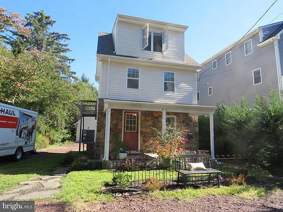 Nice home directly across from Canal in Yardley Borough. Three bedrooms 2 full baths. Remodeled kitchen with plenty of upgraded cabinets and granite countertops. Hardwood floors in living & dining area on main level. Large deck on back of home with access from kitchen door. 2nd level has 2 good size bedrooms with double closets. Large closet with sliding doors for Washer & dryer in hallway. Newer full bath with tub shower combo. Rear bedroom has door to small deck on side. #rd level is master suite with sitting area. Large walk in closet and full master bath. Single door on back to 3rd level deck for late night drink or morning coffee. Newer heat pump with central air. 200 amp electric service. Basement has bilco doors to rear yard. Newer large 2 car garage with wide stairs to full attic is contractor's dream. Plenty of room to store your stuff and bring your toys. Great location close to center of Yardley Borough with scenic Canal trail right in front of your home. Large stone driveway and garage provide plenty of parking.