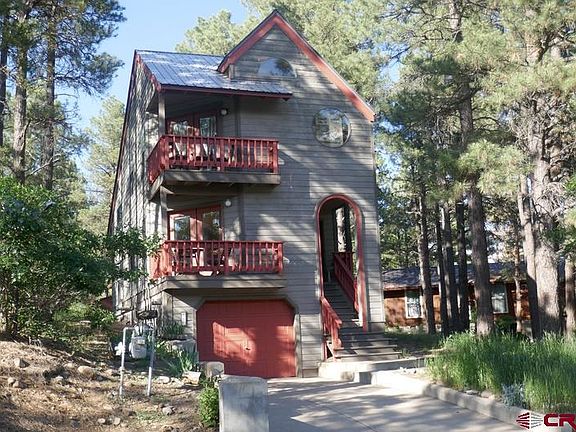 GREAT STARTER HOME OR MOUNTAIN GET AWAY!!!!! This home is great home for a second home retreat or a starter home !!!A cute home nestled in the pines at the end of a quiet cul d sac with peek a boo views of Lake Pagosa and is FULLY FURNISHED AND MOVE IN READY. Master bath has a double sink, claw foot tub and a shower. Master bedroom is on the upper level with vaulted ceiling, very unique windows and its own private deck to walk out on. Second bedroom is just a few steps down from the master . Kitchen is on the main level with a dining area that opens to another walk out balcony. On the lower level is a living room that also walks out to a 3rd balcony/deck. You can go into the single car garage from the lower living area and also has the washer and dryer. This home has JUST recently been newly painted on the entire exterior!! This is a one of a kind home with lots of eclectic and unique qualities that will be a delight for the buyer looking for their own affordable home in the trees. Call TODAY for your showing!!!!