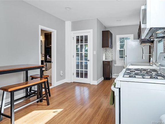 Cozy West Side Cape With Front Porch! This interior remodeled home is turn-key ready. Features include new thermo-pane windows, new condensing energy efficient gas boiler and water holding tank. The main level offers dining area and living room with hardwood flooring and gas fireplace. Main level bedroom with hardwoods and large built-in hutch/closets along with access to full bath. The remodeled kitchen starts with laminate flooring and counter top with a tiled backsplash and upscale cabinetry. The sunroom has new pergo flooring and a built-in gas heater along with access to the 22x12 exterior back deck that has been updated with mahogany flooring and composite railings/spindles. The main level state of the art full bath has been engineered with a modern flare starting with a multi jet shower, granite top with vanity, heated tile flooring and towel rack while the new smart toilet delivers every option for comfort. Upper level showcases two generous size bedrooms with new carpeting and access to crawl spaces in each room. Lower level is partially finished for potential bonus/office room with gas fireplace and 2nd full bath with Jacuzzi tub and granite top with vanity while the laundry closet includes both washer and gas dryer. This home is one that is inviting and ready for you to be in for the holidays!