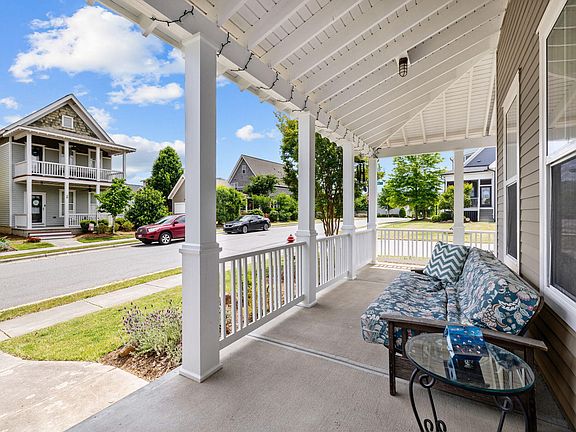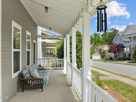 Light and bright 3 bed, 2.5 bath home located on a quiet street on a corner lot with wrap around porch in Briar Chapel. First floor features hardwood floors throughout open plan with built ins flanking the fireplace. Kitchen has a large island with room for 4 chairs, granite counters, stainless appliances, gas stove and a bank of 3 windows looking out into the back yard. Enclosed porch on the back of the home works great as an office, exercise room, or dining area. Plantation shutters on the front of the home downstairs. 9 foot ceilings up and down. Hardwood steps lead to 3 bedrooms up. 2nd and 3rd bedrooms share a Jack and Jill bath. Primary bedroom is at back of the home and has walk in closet, dual vanities and large tile shower. Back and side yards are fenced. Great location in Briar Chapel only 2-3 blocks from clubhouse, pool, and parks. Come and see it today!