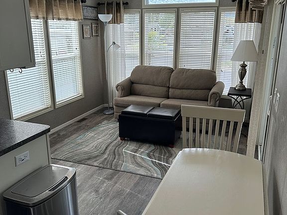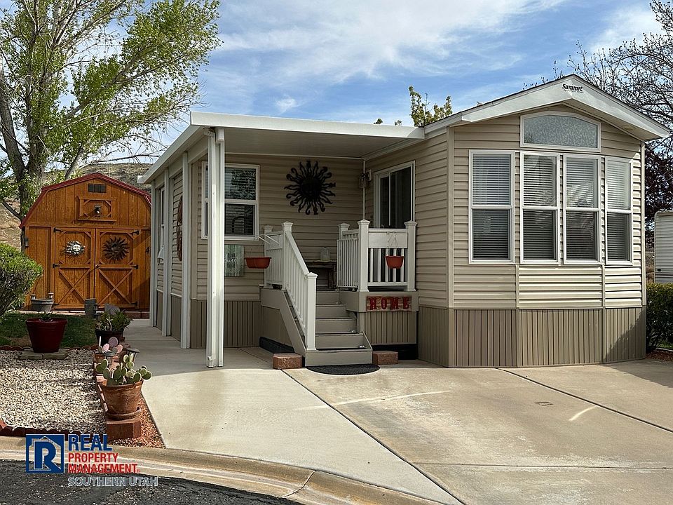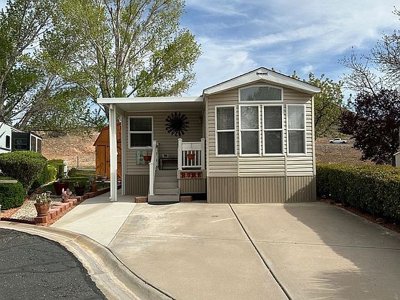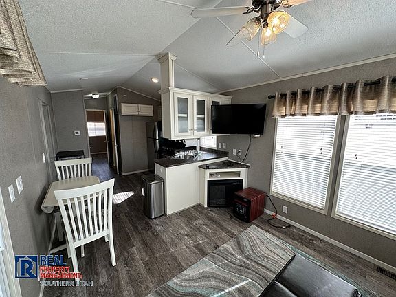 Partially furnished 2 Bedroom 1 bath modular home located in the Canyons RV subdivision. Lot includes plenty of storage, nice outdoor courtyard area, and peaceful neighborhood. +$250 lease initiation fee.