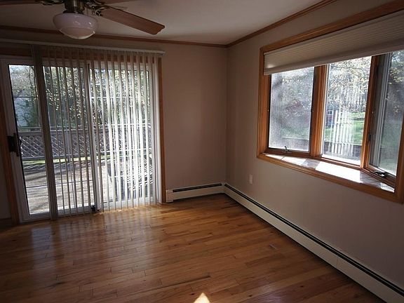 3 or 4 bedrooms; 2 baths, 2 car garage, 1 acre corner lot, large deck, Recently completely remodeled. Brand new kitchen, dining room and both bathrooms. Hardwood floor in dining room, wall to wall in rest of house. Central A/C, new energy-efficient boiler, extra insulation in attic. Energy efficient replacement windows. Fully applianced. Very quiet neighborhood.