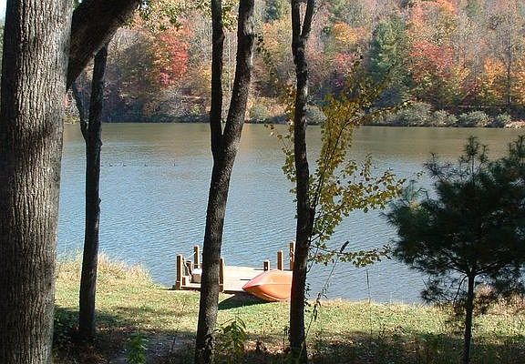 Log home lakefront cabin in popular "Lake Buckhorn" Community with paved roads, underground utilities, and easy access to the downtowns of Blue Ridge and Ellijay. Cabin is being sold completely turn key including hot tub and canoes. Spacious and open floor plan with everything on one level! Master has large walk in closet and jetted tub. Level private yard with fire pit and horseshoes and just a few steps to private dock and hiking trail. Very successful rental history grossing $40k plus consistently!