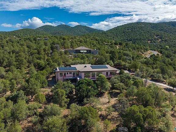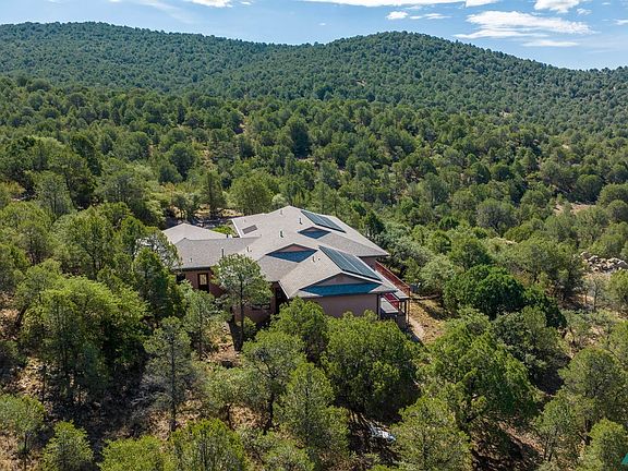 QUALITY meets BEAUTY! Perfectly positioned, architect-designed 4 BD/3 BA custom home in Dos Griegos. Expansive floor plan with elegant ceiling heights, unique built-ins, and solid oak floors. Contemporary split floor plan design features over-sized, south-facing Pella windows. The living and dining areas all have stunning views of evergreens and mountains. Huge chef's kitchen with custom cabinetry. Feel as though you are in the trees from the spacious master bedroom with access out onto the full-length deck! Every bedroom has a glass door, deck access and views. A 2 Car Garage with a workshop room and a Tesla charging station + a separate 1 car garage and then another garage for a small vehicle. Quality construction with a steel foundation. A greenhouse is tucked beneath the full-length deck featuring a hot tub. NEW ROOF in 2020. Low electric bills thanks to a NEW SOLAR PANEL SYSTEM added 2020. This property has so much value!!!