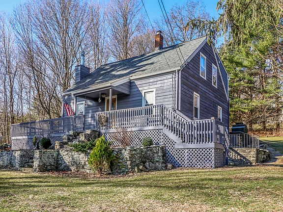 Anchored by a 3+ bedroom, 2 full bath New England cape this 3.39-acre property features a one-story guest cottage, antique barn, and private pond. Enhancements to the property are evident when you walk through the front door of the circa 1910 house. Hardwood floors run throughout the first floor. The traditional living room features a wood-burning fireplace with antique oak surround. Double doors at the opposite end of the room lead to two rooms ideal for your office, den, playroom, and/or first-floor bedroom. What was once a vintage kitchen has been transformed with maple cabinetry, granite countertops, and an island with double sink, dishwasher, and breakfast bar. An expansive dining room is open to the kitchen with sliders that lead to an elevated deck in front and a door that leads to a private bluestone patio with raised bed garden and outdoor fireplace in the back. Upstairs, the dormered cape allows for three bedrooms and a second full bath. The master bedroom with walk-in closet has scenic views of the barn and pond. The heating and cooling systems were replaced within the last few years. The updated guest cottage with separate entrance is ideal for guest space, rental income, or a personal studio. With a two-year young asphalt shingle roof on the house, cottage and barn this property is ready for a new owner to make it their own. Convenient to Routes 6 and 61 and ¾ of a mile to the trail at Nonnewaug Falls. Available immediately. Barn sold as-is.