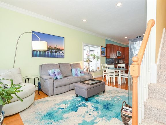Move right into this beautifully updated, sun-filled, open concept townhome located on Waltham's vibrant south side. The first floor includes an updated kitchen w/ granite counters, oversized island, high-end stainless steel appliances, built in coffee/wine bar & gas cooking. Large living & dining areas, 10 ft ceilings, beautiful hardwood floors, 1/2 bath & access to the private outdoor Trex deck round out the space. The second floor boasts two expansive bedrooms w/ large closets that include closet systems, a spacious full bath, laundry & pull down attic access. Additional space in the finished basement creates endless living/working/playing possibilities. Large windows throughout w/ custom wood blinds, bathrooms with waterproof vinyl flooring, ample attic & basement storage. Enjoy low energy bills between the nest thermostats & solar. 2 car off street parking, private outdoor space w/ gazebo & gardens. Updates include new heat/ac system (2024) new water tank (2020) & storm doors.