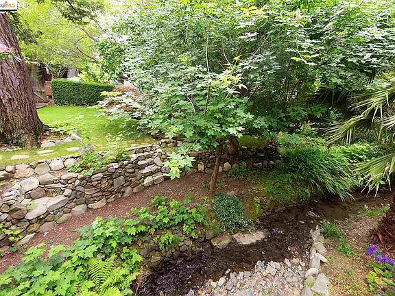 In the heart of Berkeley's Claremont district, on one of its most beautiful and coveted streets, designed by John Hudson Thomas sits this 4BD/3.5BA majestic and magical home. The spectacular two-story redwood-paneled living room with a towering cathedral-like ceiling, dramatic fireplace and picturesque views into the garden, opens to a porch that overlooks the flowing creek. Formal dining or casual eat-in kitchen are both options. The real piece de resistance is the upper level, an expansive third floor featuring a dramatic atelier. This exciting space with its soaring ceiling and majestic window is a light-filled enchantment with versatile potential. Adjoining plus room and full bath adjacent complete this level. The opportunity to own this important example of Berkeley's First Bay Tradition in architecture is an invitation to a lifestyle of calm among mature oaks and redwoods while living close to the much sought-after amenities of Claremont.
