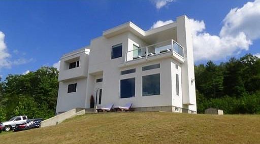 SIMPLY STUNNING CONTEMPORARY. Custom designed with vast windows to take in the breathtaking mountain views. Step into the beautiful foyer entrance and into a dramatic open floorplan designed for living and entertaining. Striking dark bamboo flooring throughout. Spacious open kitchen, gorgeous marble counters, huge work island w/ breakfast bar, pantry and comfortable dining area overlook the window filled living room w/ gas fireplace and sliders to a patio. An additional room could be office or family room and a full bath complete the first floor. The second floor offers a luxurious master suite w/ a private covered deck w/ glass railings to enjoy the spectacular views. The master bath has double vanities, oversized custom shower, rain showerhead, soaking tub, walk-in closet. Two additional bedrooms share a full bath, a cozy alcove and access to another deck. Cul-de-sac in an upscale development only minutes to Amherst, Northampton and Quabbin. One of a kind!