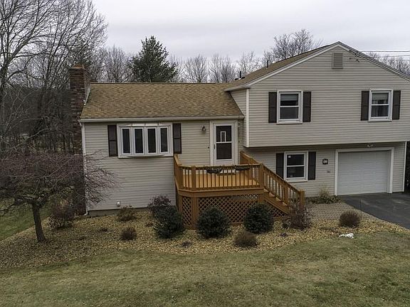 Nothing to do but move in and enjoy this immaculate, lovingly maintained multi-level ranch style home in convenient Belchertown location and only minutes to Amherst and bike trail. The entire main living area has an open floor plan with oak hardwood flooring. Enjoy the intimate and warm feel of the family room with custom pine walls and wiring for surround sound, the fireplace in the living room with built in bookcase. The kitchen is perfect for entertaining, as well as the dining area with atrium doors leading to the heated, glass 3 season room to enjoy the beauty of the outdoor landscape. Features of this home include a multi-level vinyl deck, 12X20 shed, attached outside storage area, timer for flood lights, Thermopride heating system, central air conditioning, and generator.