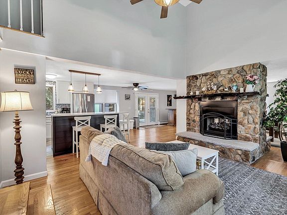 Start Your Next Chapter Here!! Immaculate and dynamic custom Cape south of Route 28 with access to Bournes Pond. From the moment you walk in you know you've found your new Cape home. Some of the best features of this 3BDRM 2FBTH property with hardwood floors throughout is the first-floor primary bedroom with access to a newly renovated full bathroom. The newly renovated chef's kitchen with quartz counter tops and appliances are a sight to see. Soaring cathedral ceilings as you enter with exposed wide honed beams. Double-sided native fieldstone fireplace with unique mantel separates the living room from the dining room with access to the backyard deck. The Second floor offers two bedrooms and another newly renovated full bathroom. Stay dry when you pull into the underneath garage on a rainy day. The furnace and water heater have recently been updated, there's also a hook up for a portable generator as well. The Association dock gives you access to Bournes Pond for easy small craft boating, kayaking or shell fishing. Just minutes to Menauhant Beach, Mashpee Commons, and Downtown Falmouth.