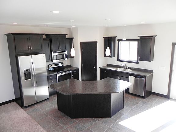 This spacious "Nottingham" floor plan boasts a triple garage, upper bay windows, 9' ceilings, mission style woodwork and plenty of living space! The kitchen boasts staggered cabinetry, kidney shaped island and walk-in pantry! Open to the kitchen is the living room and dining room with a patio door to your future deck. Also on the main floor you will find 2 spacious bedrooms with a full bath, and on the upper level is the private master suite featuring a walk-in closet and bathroom with built-in linen storage. There is also room for expansion in the daylight lower level with a future family room, 2 bedrooms and extra bath. This home is 100% complete and ready for occupancy. Builder has included a 12'x12' deck and black dirt!