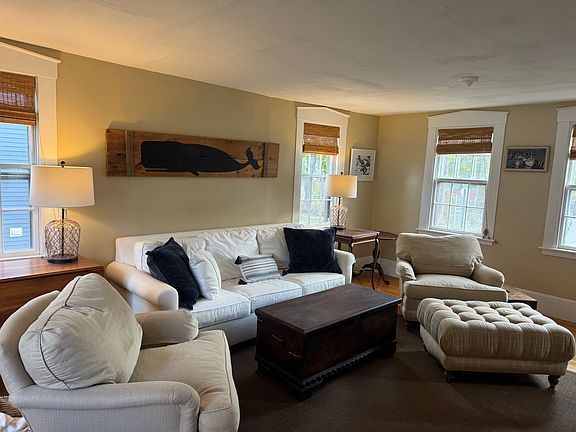 This adorable Cape is available as an executive rental in the highly sought after historic waterfront neighborhood of Oliver St/Cape Rd. in New Castle NH. Rental is furnished and available until 6/1/26. Will assist beyond that date. Two story Cape with adorable kitchen that opens onto a covered porch with a cozy couch overlooking your large sunny backyard, a rarity on this island. Enjoy the sundrenched dining and living room during your mornings, and your first floor office. The second floor has 2/3 bedrooms and a bath. Abundant parking in the driveway and on-street. Walk or run the six mile loop, enjoy the pristine waterfront just a few feet from your front door, bask in the New Castle common sunshine and take in the views, or drive minutes to downtown Portsmouth for dinner and a show. Temporary rental until 6/1/26
