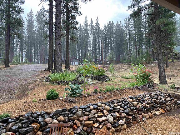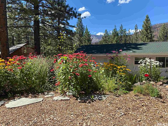 Experience comfort, charm & warmth in this beautiful home with upgraded features such as a newer roof, windows, exterior paint & rain gutters. The home boasts great covered decks & a private setting perfect for peaceful living. The interior features vaulted wood ceilings & an open floor plan, seamlessly integrating the kitchen, dining & living area into a great room style. Enjoy the efficient wood stove with river rock hearth, providing warmth & coziness during cooler months. This delightful home offers two, nice bedrooms & one full bath. A convenient storage area under the deck and house as well as wood storage shed is included. The property is accessible from Pinon & Oxbow, with ample space to potentially build a garage, add a Mother-in-law unit, or build garden beds. Opportunities are endless. National Forest trails & Grover Hot Springs State Park are nearby.