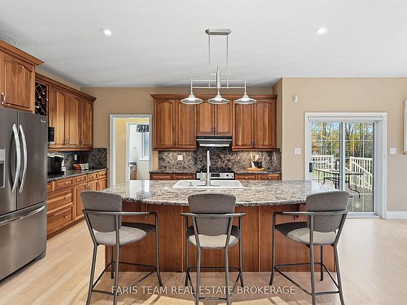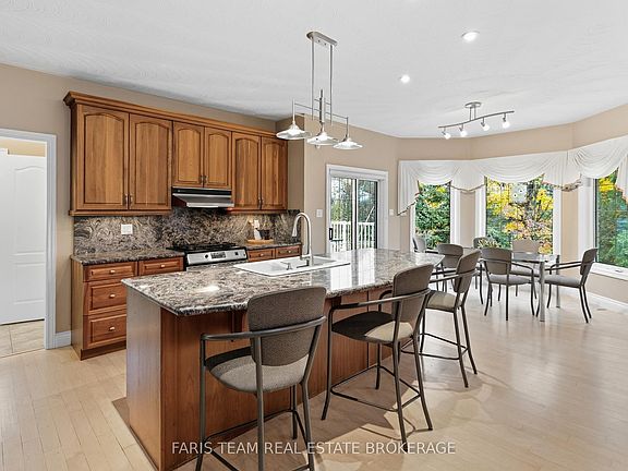 Top 5 Reasons You Will Love This Home: 1) Experience soaring cathedral ceilings, with beautiful textured details, large windows and over 45 recessed lights that fill the home with natural and ambient light, and the spacious open concept layout flows seamlessly from the living and dining areas into the large kitchen, featuring a generous island with granite countertops, rich wood cabinetry, and an abundance of workspace, while the bedroom wing is thoughtfully separated from the main living area and closed off by double doors, providing both comfort and privacy within the home's expansive design 2) Enjoy a beautifully landscaped backyard thoughtfully designed for both relaxation and entertaining, where the upper deck off the main level offers a scenic view of the private yard, and the walkout stone patio below leads to a soothing hot tub for year-round enjoyment, with two separate basement walkouts adding versatility and ease of access 3) The bright basement features a versatile recreation room, two bedrooms, a full bathroom, and a separate entrance from the garage, ideal for an in-law suite or future rental setup, with a home down the street recently renting its lower level for $1,700 per month, showing strong income potential in this neighbourhood 4) From the extra-deep two-car garage with space for multiple vehicles or a boat, to elegant crown moulding, marble bathroom finishes, and a beautiful brick and stone exterior, this home showcases timeless quality and attention to detail inside and out 5) Nestled in the highly sought-after Midhurst community across from a park and close to top-rated schools, this home is just minutes from Barrie, Snow Valley Ski Hill, and Highway 400, creating the perfect balance for families and commuters. 2,296 above grade sq.ft. plus a finished basement. 4,497 sq.ft. of finished living space.