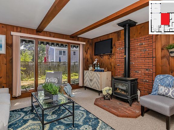 This adorable ranch is just 3 houses away from Great Pond and 5/10 mile to beautiful Bristol beach on Vineyard Sound and Falmouth Heights. It has an open kitchen, dining area and living area that leads to a bright three season porch and deck for entertaining. The flat fenced backyard offers privacy and a shed for storage, as well as the full height dry basement. The house needs some updating but has been lovingly cared for by one family. Out of the flood zone and on town sewer, there is much flexibility for future expansion plans.