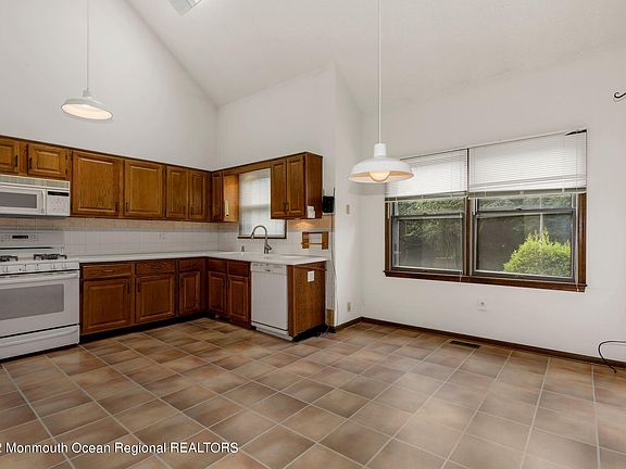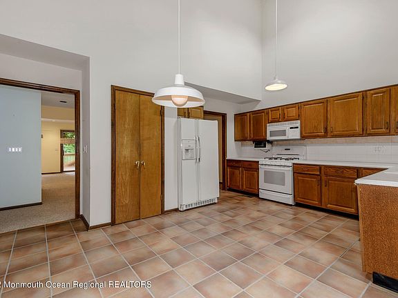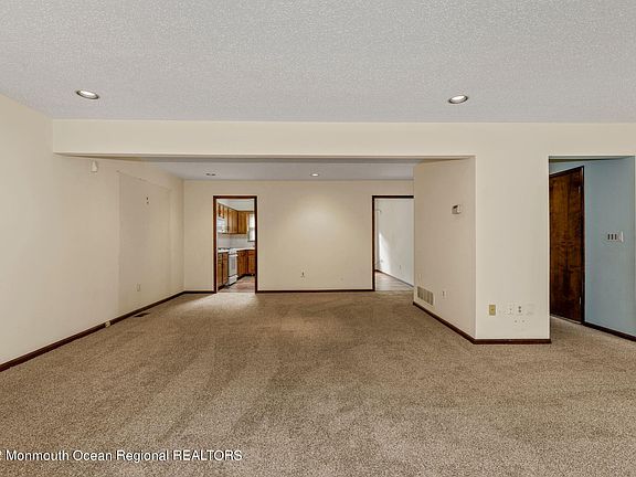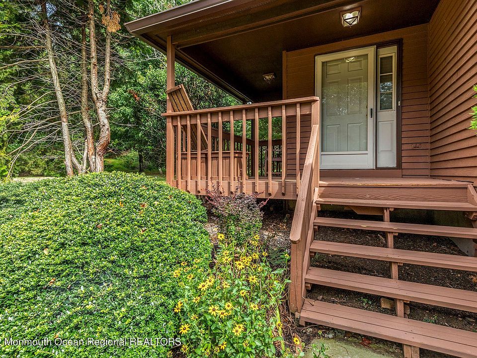 This is a unique end unit townhome. As you enter thru the garage, you have a family room finished basement, with a little kitchen area, a full bath, laundry room and an extra little storage room. The next level is the living room, dining room (with new carpeting), half bath & large kitchen, skylight, with a deck to the treed back yard. The 3rd level has 2 bedrooms and 2 full baths. The master bedroom has a deck with a view to the backyard and large walk-in closet. This home in Navesink Estates is surrounded by picturesque tall trees and nature. Home is being sold ''as is''.