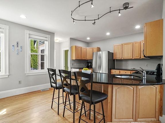 Condo convenience meets single family charm in this free-standing turn-of-the-century carriage house condominium on one of East Somerville's most coveted blocks. Tucked behind a charming Mansard Victorian and overlooking a courtyard, this home has its own private front porch entryway and mud room. High ceilings, hardwood floors, oversized windows and a gas fireplace distinguish the main living areas and the bright, contemporary kitchen with stainless steel appliances. French doors off the kitchen swing open to the elegant formal dining room with built-in bookshelves. There is also a half bath on this level. Upstairs there are three lovely bedrooms and two full baths, including a generous master with an ensuite bath and private deck. Fabulous finished basement with laundry and an additional full bath. Central air, assigned parking, and common patio/courtyard. Outstanding location near Sullivan Sq T, Assembly Row, future Green Line extension, and acclaimed shops and restaurants.