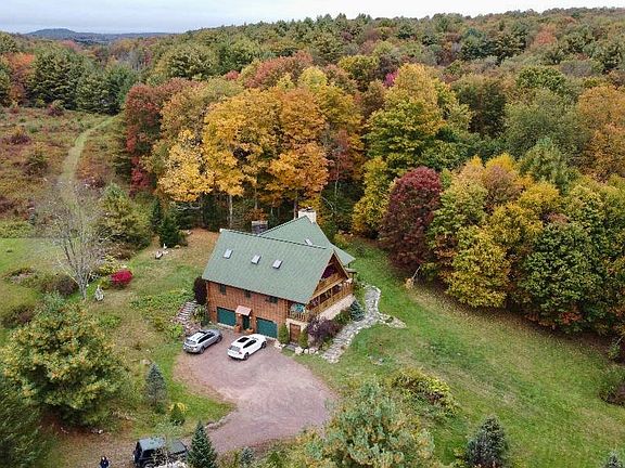 Escape to the ultimate retreat in this ultra-private Beaver Mountain log cabin, nestled on 7.29 acres of picturesque land with a tranquil pond stocked with fish. The stunning cabin boasts unparalleled privacy and seclusion, making it the perfect place to unwind and recharge in an incredibly quiet area. A perfect combination of rustic charm and luxurious amenity, the cabin offers a unique and unforgettable experience. Surrounded by nothing but the beauty of nature, out of sight from neighbors, you'll feel rejuvenated as you bask in sunshine, or cozy up by the fireplace inside. The cabin's interior is a testament to its luxurious nature, featuring high-end finishes, modern appliances including custom poggenpohl cabinetry, imported Italian marble flooring, radiant floor heat, and lavish furnishings that provide the perfect blend of style and comfort. Enjoy the spacious open-concept living area, perfect for entertaining or simply relaxing with loved ones. The property gives you all the advantages of rural seclusion without sacrificing proximity to great food, night life, skiing, and other activities. Take a dip in the nearby Delaware River, or simply relax and take in the breathtaking views from the comfort of your own private oasis. Close to the trendy hamlet of Callicoon with excellent restaurants, a short drive to Honesdale and nearby Elk Mountain Ski Resort, Montage Mountain, and the Villa Roma Resort. When you're tired out from a long day on the pond, out skiing the countryside, and enjoying the outdoors, wrap up the day by soaking in the soothing silence of Damascus, PA where the stars shine oh, so bright. Life is short. Make it YOURS!