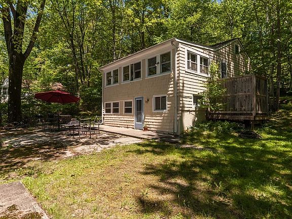 Wonderful getaway beach bungalow on peaceful Pine Island Lake in Westhampton. This cozy home features 2 bedrooms, a newly constructed 245 sf insulated sleeping loft with skylights, a separate office on the first floor which could be used as a third bedroom, an open concept living/dining room off of the well-equipped kitchen, a Jotul propane stove for heating and ambience. Step outside onto the spacious patio to enjoy beautiful sunsets, private beach with great freshwater swimming, fishing and kayaking or canoeing, or just a chance to sit back and unwind and take in the views. Pine Island Lake does not allow motor boats which adds to the tranquility of the setting. Property has a large storage shed and private outdoor shower. Tight tank septic installed in 2005. 60 Gallon hot water heater installed in 2011. This home is the perfect spring/summer and early fall getaway - just 20 minutes to downtown Northampton!
