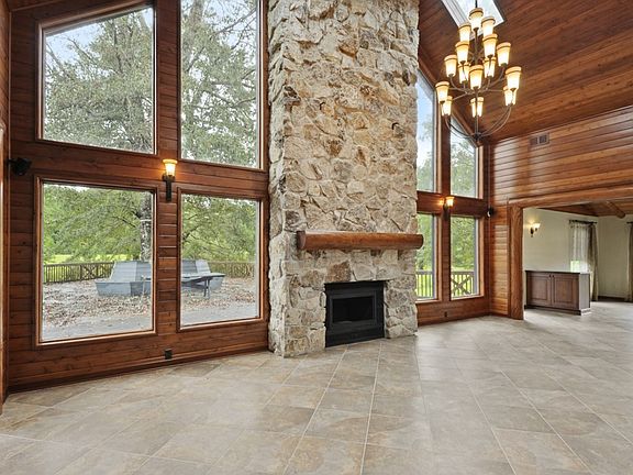 Gorgeous Home! Gated frnt porch w/teak wd ceiling welcomes you into a state of the art baker's kitchen, beautiful custom cabinets, granite countertops, GE Profile SS appliances, gas cooktop, double ovens, island w/prep sink & ice maker, Lrg walk-in pantry. 25x14 dning area, hand cut knotty pine ceilings & walls throughout, Lvrm has 20' vaulted ceiling&chandelier lift, beautiful stone frpl, huge mstrbdrm & bath w/ double sided gas frpl, jetted tub,separate shower,towel warmer, cinder block safe rm, glass sunroom, large walk-in attic could be built out, guest apt. RVgarage, Full house generator!