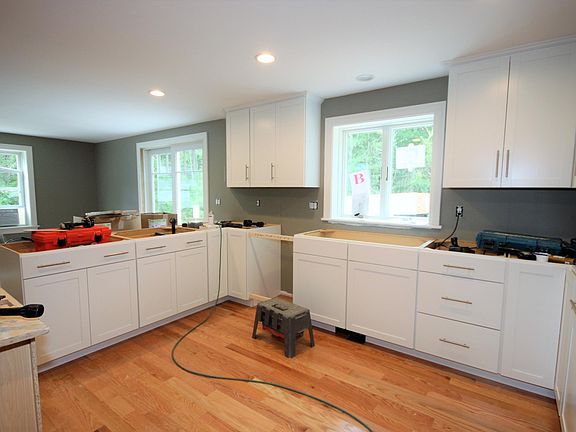 Brand new contemporary Cape. Featuring a large open floor plan. Living Room with cathedral ceiling and gas fireplace. Gorgeous kitchen with white shaker style cabinets, Granite counter tops, electric cooking and a built-in microwave. Kitchen open to dining area with sliders to deck. All hardwood floors on the first floor with the exception of the bedroom and bath. Second floor has two large bedrooms and a full bath with room for expansion over the garage with direct access from one of the bedrooms. This is a very attractive and well appointed home with high quality Andersen windows, 2 complete gas heating and air-conditioning systems, one car garage, paved driveway and more. Home scheduled for completion around the end of September. Don't wait, this is a fabulous opportunity!