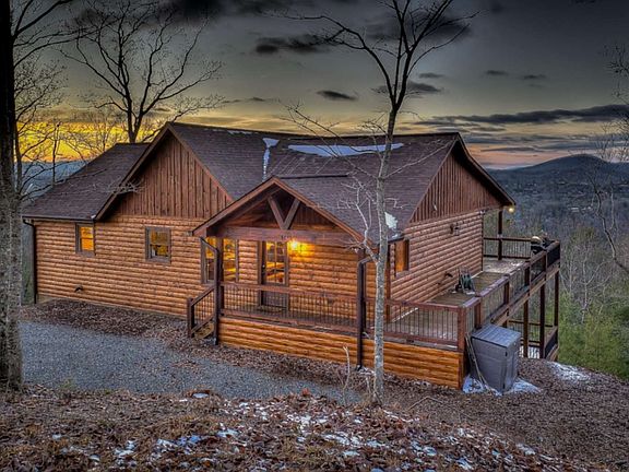 LAYERED MOUNTAIN VIEWS + FULLY FURNISHED! Immerse yourself in the beauty of Blue Ridge with this stunning 4BR + 3BA cabin. Whether you're looking for a personal getaway or a lucrative investment, this turnkey rental property has it all. The open-concept living space, log siding, and cozy fireplaces create a charming atmosphere, while the wrap-around balcony offers the perfect spot to take in the year-round mountain vistas. Inside, the luxurious wood finishes and spacious kitchen with granite countertops and top-of-the-line appliances exude elegance. The main level living room with cathedral ceilings and rustic designs is an impressive highlight. The primary ensuite provides a spa-like retreat with dual vanities, custom tile shower, and private deck access. Additional ensuite ensures guest comfort, while the colossal party deck is an ideal setting for enjoying breathtaking sunsets over the mountains. Downstairs, the entertainment options continue with a game room featuring a pool table and wet bar, and there's even another ensuite for added convenience. The terrace level invites relaxation with a hot tub and fire pit area. This property offers the ultimate mountain living experience with convenient access to Downtown Blue Ridge, McCaysville, Murphy, hiking trails, Lake Blue Ridge, local shopping, dining, horseback riding, tubing on the Toccoa River, and more. A true must see!
