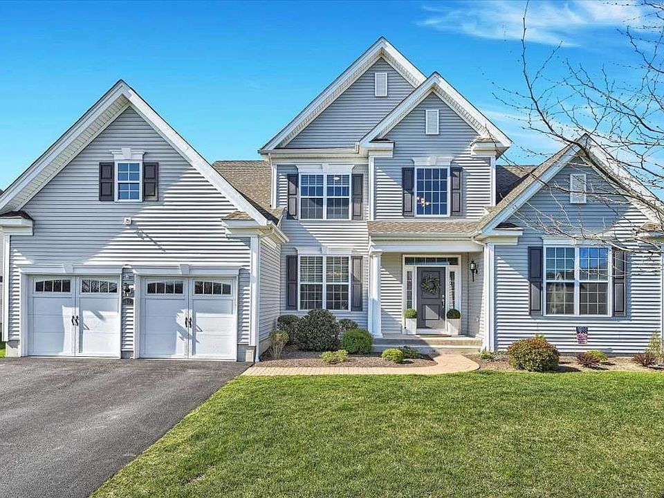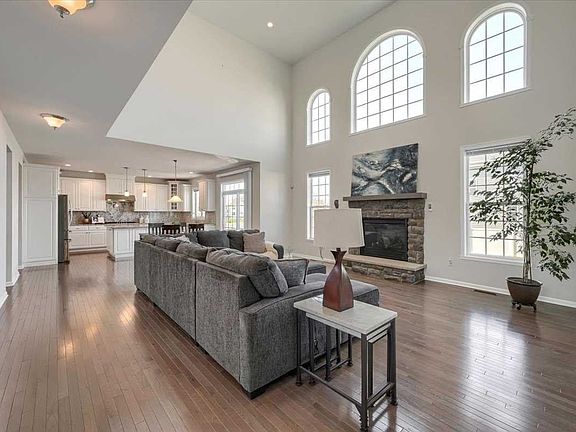 Exquisite Palmerton model home in the Hopewell Glen community. Upon entering, an impressive two-story foyer opens to a formal dining room. The ground floor is home to a luxurious primary bedroom suite with coffered ceilings. Its versatile design includes an en-suite with a French-door entry, dual sink vanity, Roman tub, shower with seating, and a water closet. The star attraction is the impeccable granite countertops and backsplash with chef-quality finishes and appliances. The floorplan encompasses a pleasant, light-filled two-story family room with a gas fireplace. Also on this level, whether you need a personal office or a spare room for guests, you can convert the extra room into whatever you need. Escape from daily life in the home theater room. Full bathroom in the basement and potential for a fourth bedroom. Fenced-in yard and a large patio area with Cambridge pavers. A gas connection is available for a future kitchenette. Another asset is the home has a Generac generator.