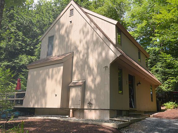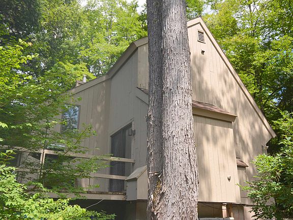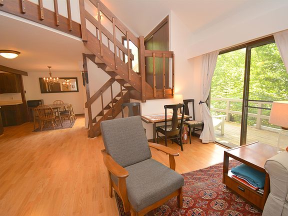 Stand alone Eastman condo in South Cove! Situated within a short walk to the activity center and beach. This Webster style condominium with 3 bedrooms and 2 bathrooms features beautiful new floors and 3 mini splits. Enjoy an open living area with cathedral ceilings, galley kitchen, and dining area with sliders to the back deck. Main level bedroom and bathroom. Primary bedroom with bath on the upper level along with another bedroom. Enjoy lake activities, golf, tennis, pickleball, cross-country skiing, walking trails, an indoor pool, fitness center and more in the four-season community of Eastman!