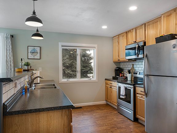 With so many upgrades, this immaculate home is well appointed!! Open floor plan with south facing living, light and bright. Updated kitchen with all new appliances in 2020. Besides the 2 bedrooms on the main floor, the seller uses the additional rooms in lower level as 2 more bedrooms. Remaining lower level is open, used as workout and game room. Recent upgrades include: 1/2 bath 2019, roof in 2015, lap siding and paint in 2022, seamless gutters in 2021, concrete patio added in 2020, shed 2018, Insulated garge door & garage is heated. Also features natural gas furnace with central A/C. Back yard is fenced, underground sprinklers, apple, pear, and peach trees. Lots of room for shop, garden. Great location...come and see!!!