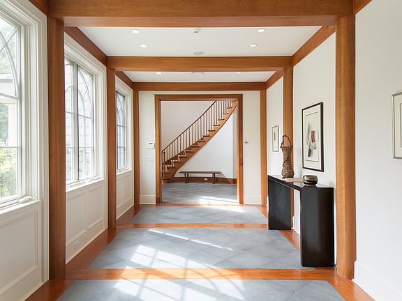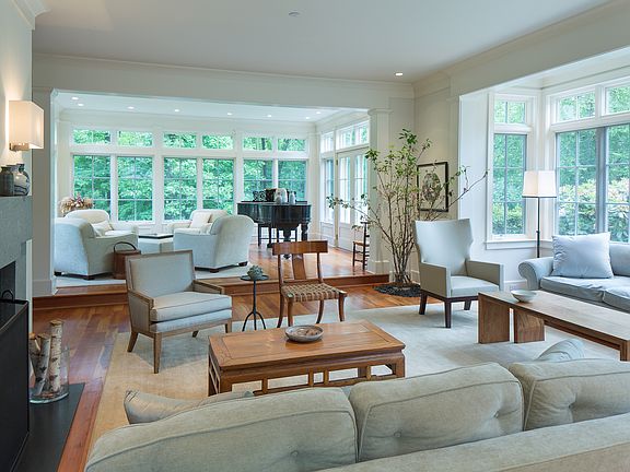 Pond Hill: A long gated drive leads to a stunning hilltop colonial on over 10 acres. Expertly crafted and completed in 2001, the house was twice selected for the New Castle Tour. A remarkable country home blending traditional architecture with contemporary design. The interior is simple yet elegant; a perfect blend of formal and informal rooms for entertaining. The two story entry leads to a 24 foot sun-lit gallery and formal living room. A state of the art kitchen opens to a large breakfast room and family room with massive native stone fireplace. A private master bedroom suite is among seven bedrooms, seven full bathrooms and four 1/2 baths. A fully finished lower level is complete with a gym, wine cellar, billiard room, home theatre, full bath and basketball court. Beautiful, open and private property is defined by rolling lawns, lovely gardens and a 25 meter Shoreline pool. Minutes from the convenience of Chappaqua village, Pond Hill is a property of great quality and integrity.