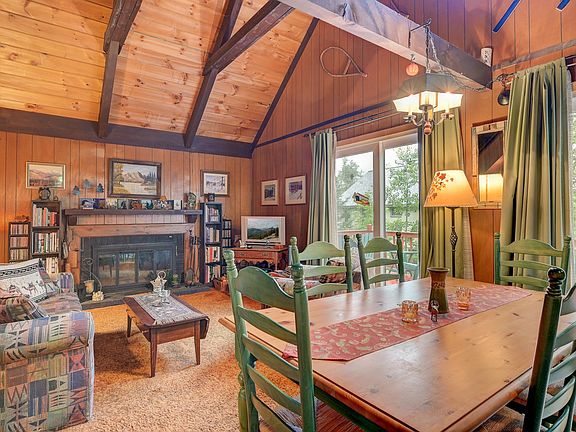 Lovely mountain chalet in a quiet setting with many new features. A lot of work has been done to this chalet-new bathrooms, vinyl siding and a new roof are just a few of the upgrades. The interior is very solid and is ready for upgrades suited to your tastes. The main level features two bedrooms, full bath and a cute living room with vaulted ceilings and a kitchen and dining area. The downstairs has a family room with another full bath and two more bedrooms. The third floor is a bonus area that could be used for additonal office or living space. A full deck off the living room is accessed through the sliding glass doors and the yard is small but easy to maintain.