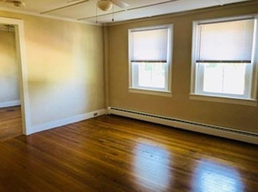 Charming 1 bedroom apartment located on the 1st floor is clean, neat & well maintained. Nice size bedroom has beautiful hardwoods. Cozy den off Kitchen. Kitchen is equipped w/ electric stove and frig. Heat & Electric included in rent. 1 full updated bath. Livingroom is approx.13x13 has a ceiling fan and beautiful hardwood flooring. Private Driveway parking for 1 car. Just Adorable must see!!