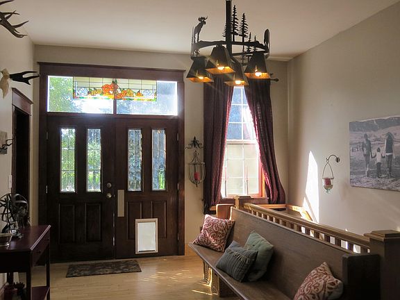 Beautifully restored and updated historic Parkman School and Community Center turned into a beautiful home. This home sits on a 1.63-acre lot with mature trees and no covenants. The brick exterior and some of the original hard wood floors remain along with tall ceilings, crown moldings, beautiful windows and a large wrap around deck. Property also has a large over-sized double car garage with large attached shop area and outbuildings. All measurements are approximate.